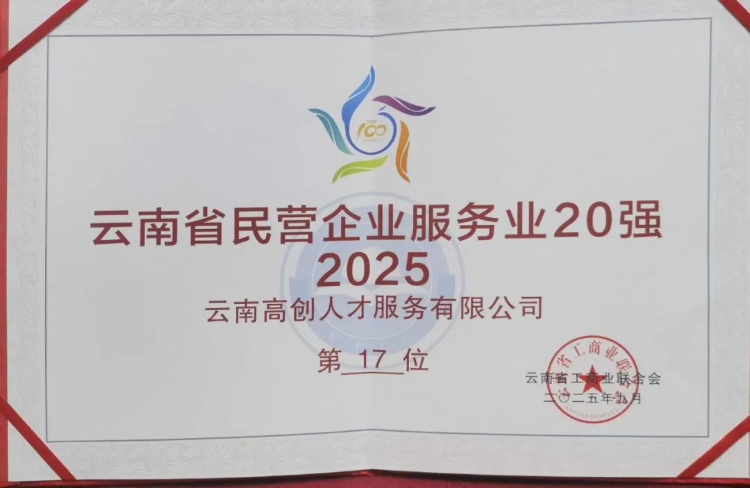 这份荣誉,不仅是对云南高创人才服务有限公司(以下简称“高创人才”)十八年来深耕人才服务领域的充分肯定,更是我们持续创新、实干前行的动人注脚。